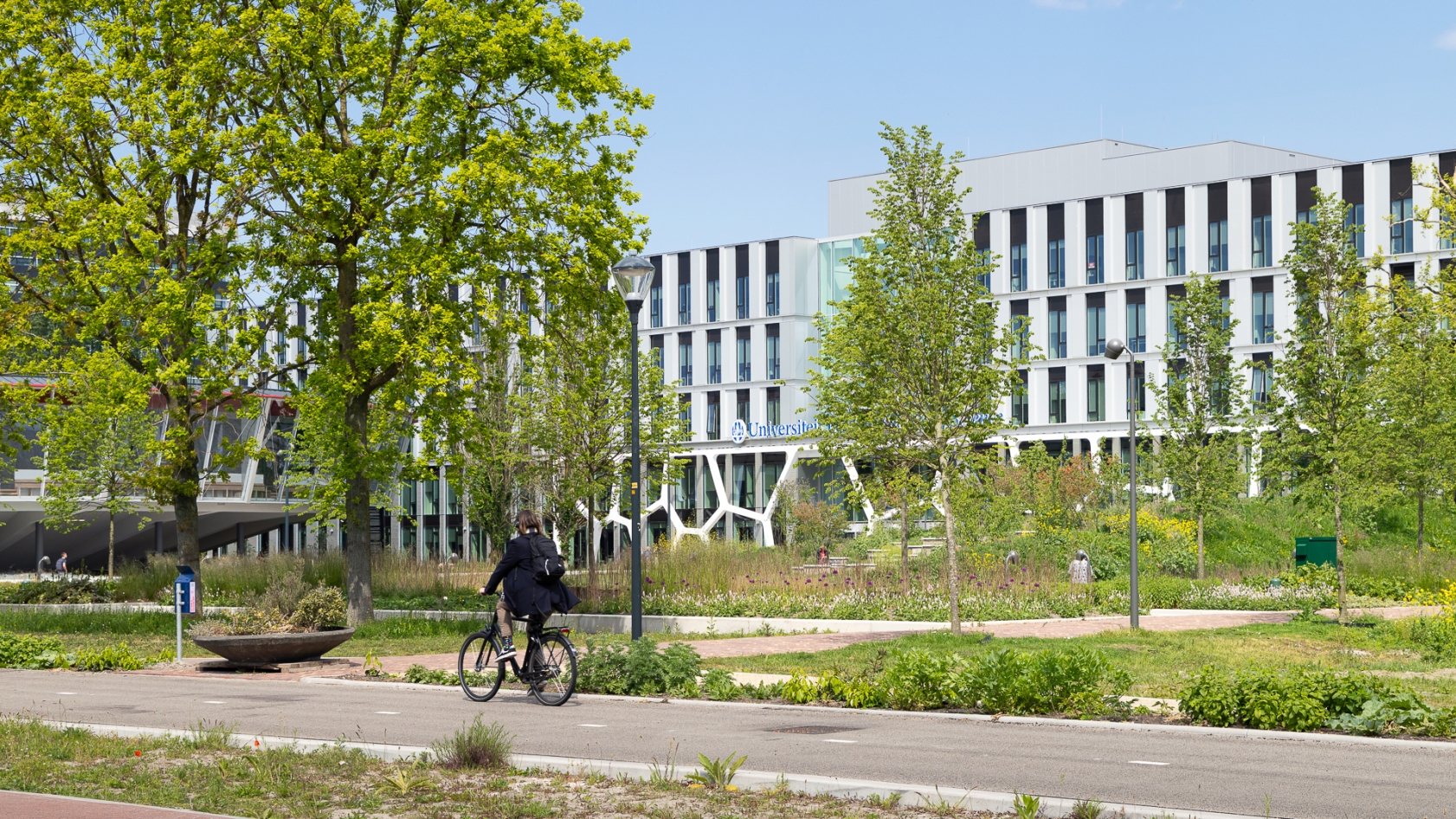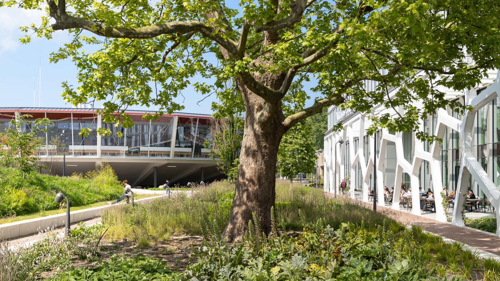 Sinds september 2024 is het dan eindelijk zover. Het vernieuwde Campusplein is klaar voor gebruik. Een grazige ligweide met zitjes nodigt er tot ontspannen ontmoetingen tussen studenten en medewerkers op het park en inwoners van de stad.